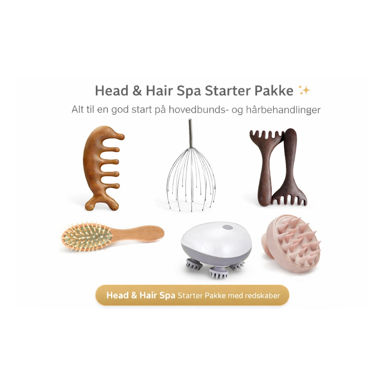 En starterpakke med redskaber til professionelle Head & Hair Spa behandlinger. Pakken indeholder udvalgte massage- og hovedbundsredskaber, der bruges under behandlingen til at stimulere blodcirkulationen og løsne spændinger. Leveres i professionel kvalitet